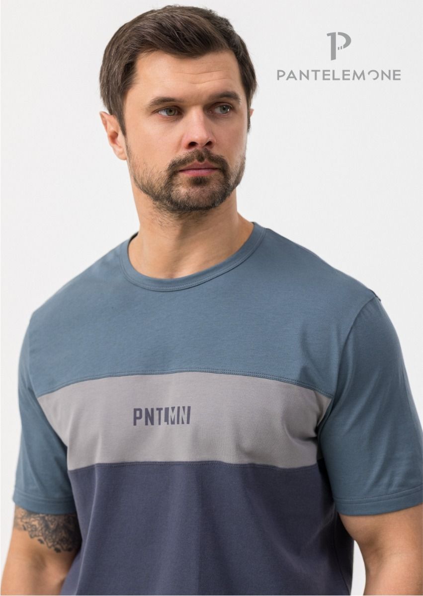 Футболка среднего объёма, выполнена из гладкокрашенного полотна, с круглым вырезом горловины. С контрастными деталями. На центральной вставке принт.